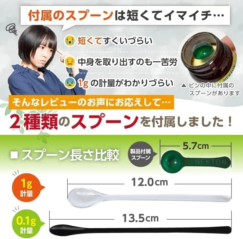 ネクトンバイオ 35g 本体 バリアブル保存袋(乾燥剤対応袋) スプーン 乾燥剤 日本語取扱説明書 |